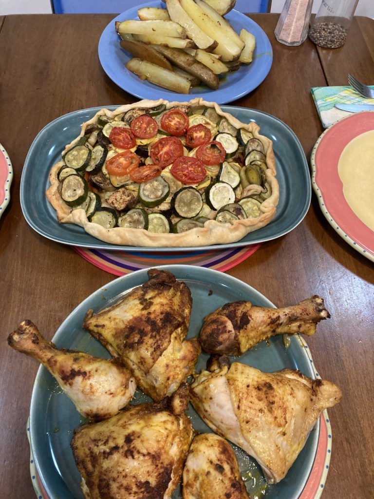 Dinner that night included lemon roast chicken with potato wedges. Very nice.