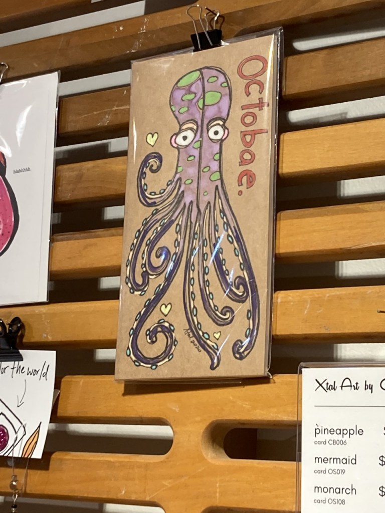 I know another octopus lurks in an oversized wall mural that we’ve passed by several times. Maybe next time I’ll stop and get a photo to my growing collection of octopi! As the annual Art Week season approaches, who knows where they will appear, eight legs and all. Or perhaps another creature will catch my eye this year.