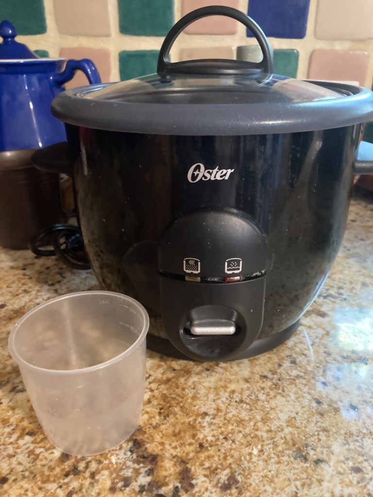 A recent acquisition in our kitchen is a rice cooker. I love it! Brown rice comes out really nice, too. This chicken/peach curry was served with steamed white rice.