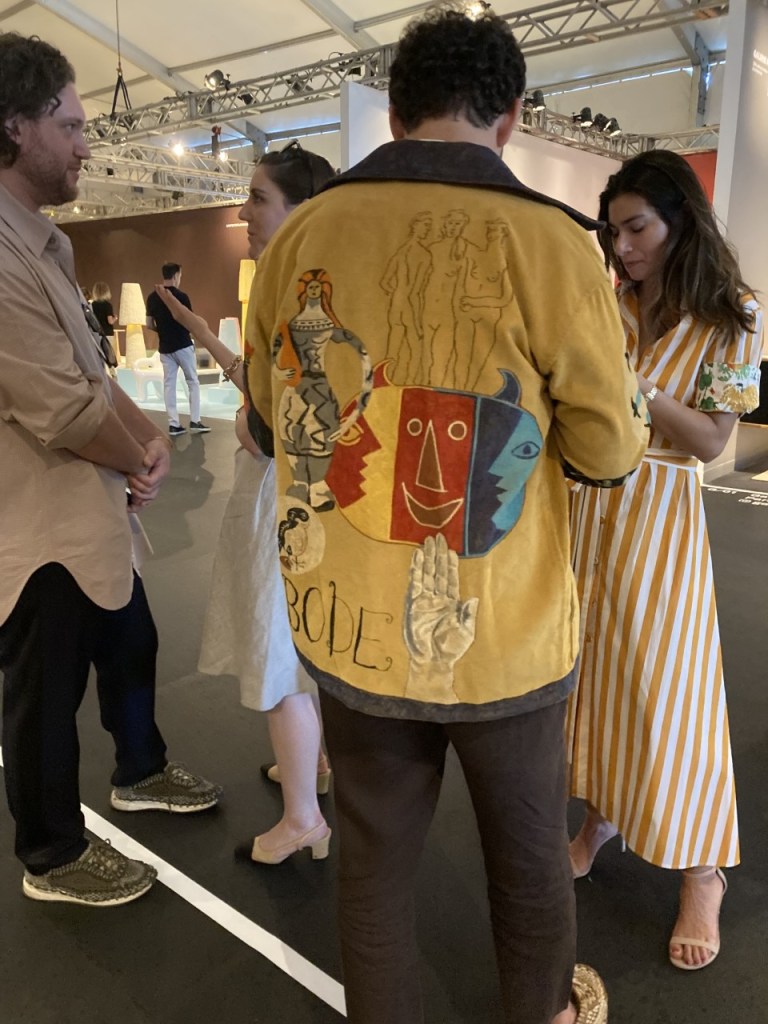 When asked, this fair-goer told me in a word “It’s Bode.” Emily Adams Bode Aujula was the first female designer to show at NYFW: Men’s, paving the way for women entrepreneurs in the menswear industry. Her garments are one-of-a-kind, composed of antique textiles (https://www.bodenewyork.com/pages/about).
