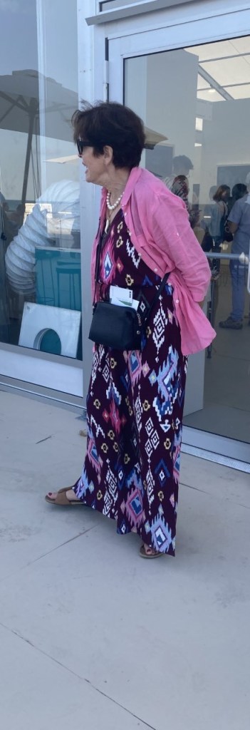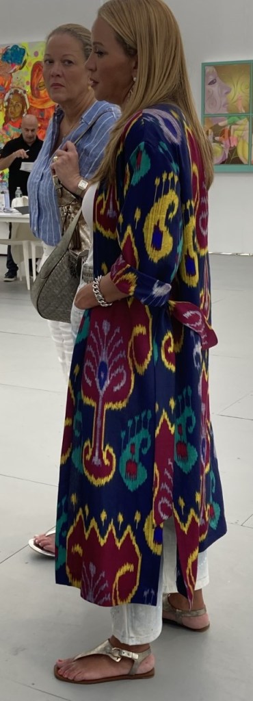 Curiously, I was struck by a number of women who were wearing ikat prints, or prints of ikat. I’m not a good follower of fashion so I don’t know if this a la mode this year, or just a reflection of people digging clothes out of their closets that they’ve not worn for two years (COVID, remember).