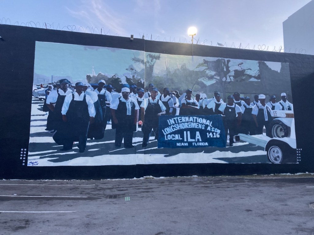 The Miami Museum of Contemporary Art of the African Diaspora (MoCAAD) – yet another new museum initiative in our city – kicked off their contribution to Soul Basel with the unveiling of a new, significant mural by local artist, Reginald O’Neal. Located on the building owned by the ILA Local 1416 (International Longshoremen’s Association), this work incorporates art, technology, and oral histories. QR codes take viewers to stories collected from union members.