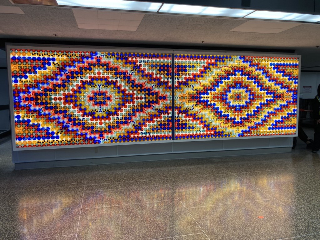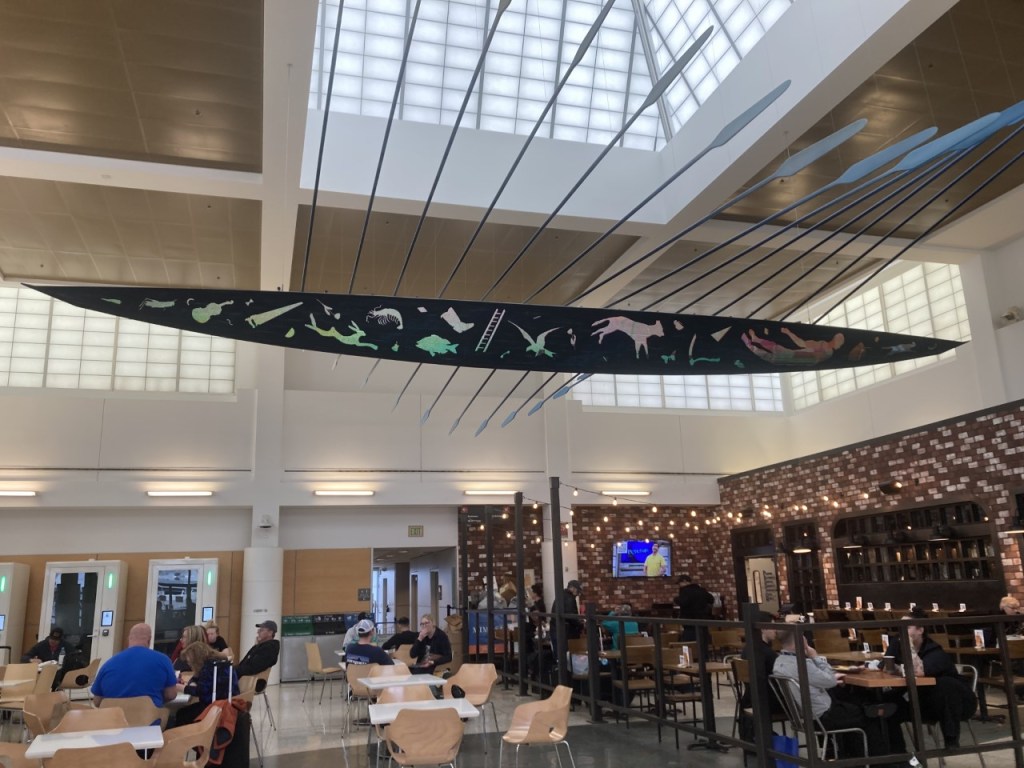 Artwork frequently stands out to me wherever I am, whether I seek it out or not. I could not help but notice some of the public art in the Seattle airport as we ran through on the way to the rental car. Journey’s End by Larry Kirkland captures images of nature and the great ocean-going boats Native Americans in the Northwest are known for.