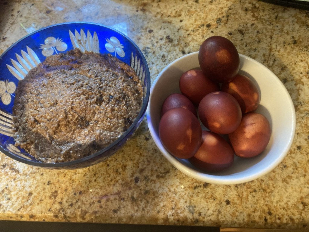 It’s that season again, the Spring holidays. I’m busy preparing my menu for Passover seder. Easter is just around the corner. And we are in the heart of Ramadan month. The kitchen’s a mess with stacked detritus from preparing annual favorites including broth for matzah ball soup, chopped fruits and nuts transformed into haroset, and the huevos – eggs hard-boiled with onion skins to appear as if they were baked.