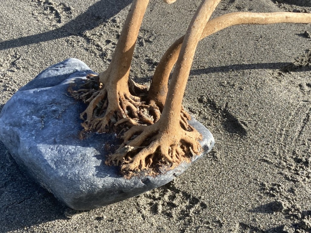 Art could be seen in nature … This is bull kelp attached to a rocks that washed ashore from the sound. They are known as “hold fasts. Art in nature, all around