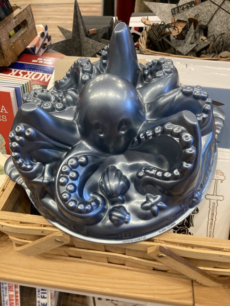 Decorating serving ware and an inventive Nordic Ware cake pan (https://www.nordicware.com/products/octopus-cake-pan/).
