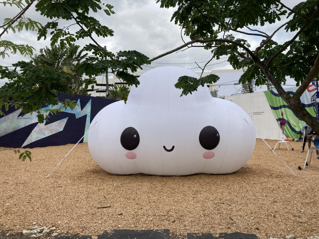 My next destination was Making Miami, a group of containers transformed into outposts of several artist-run non-profits including Diaspora Vibe Cultural Arts Incubator (DVCAI), Locust Projects, Bas Fisher Invitational (BFI), and Dimensions Variable (https://www.makingmiami.com/). Visitors are greeted by a massive inflatable by FriendsWithYou, the artist collaborative of Samuel Borkson and Arturo Sandoval III (12-22-21).