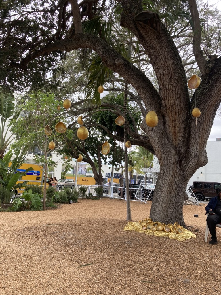 Other stops that day included Pinta Art Fair (https://www.pinta.art/Pinta/Home), which brings together the art of Latin America; Fridge Art Fair (https://www.fridgeartfair.com/) known as the “little fair that could;” and a quick walk through Art Basel. My goal there was to see the Kabinett curated by Hales that highlighted the long tradition of landscape painting by Kay WalkingStick (Cherokee/Anglo) (https://halesgallery.com/artists/138-kay-walkingstick/overview/). Her works draw viewers into another reality far from Miami Beach. Note that patterns at the bottom of the canvas; they honor the people whose land she has captured in paint.