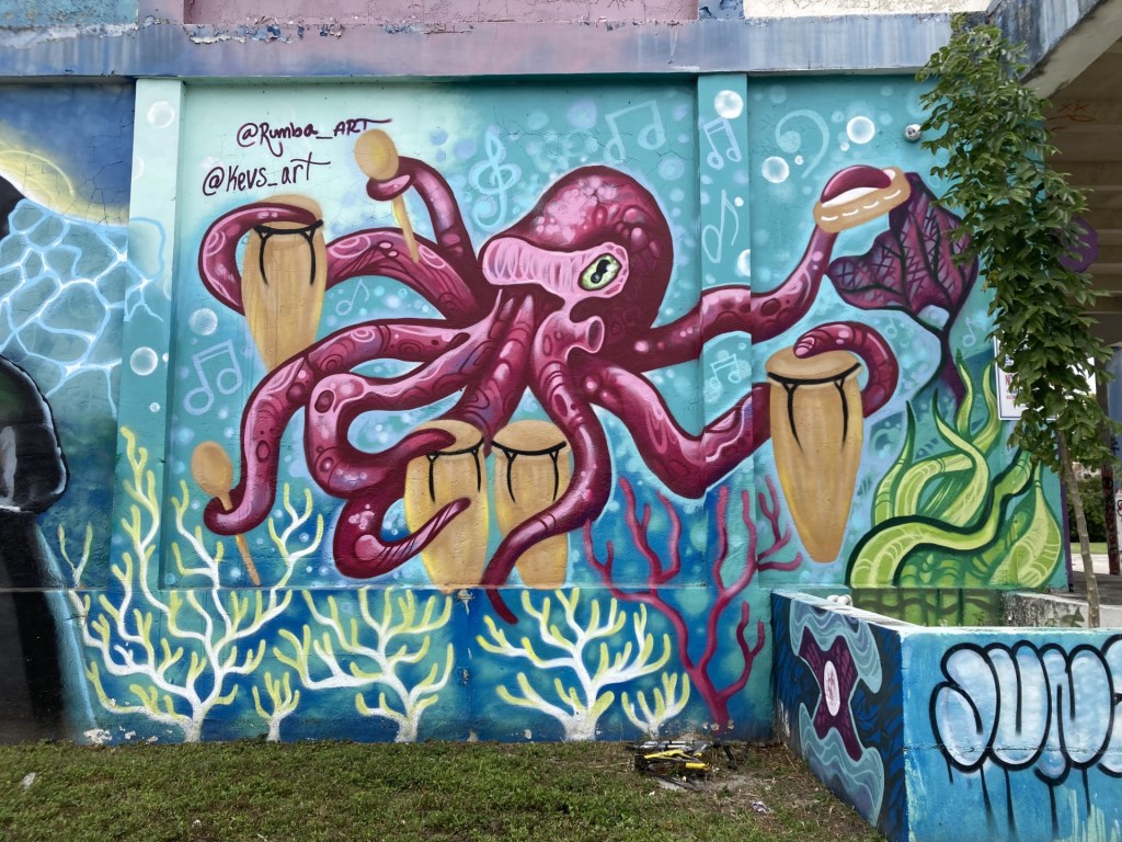 As I was by myself in the morning, I took another detour. I wrote the other day about the image of the octopus that for a while seemed to be appearing whereever I went. I knew of one on a mural en route to pick up CC. Finally, I stopped to capture a photo.