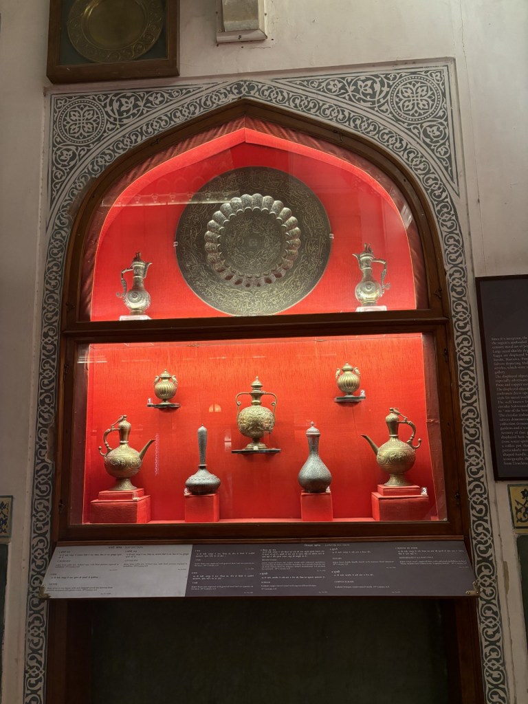 In 1887, it was reinstalled in the newly built Prince Albert Hall, named after Prince Albert’s 1876 visit to Jaipur (King Edward VII, Albert Edward). Quite uniquely, visitors were allowed to borrow pieces to study and replicate, demonstrating the museum’s role as a resource for local craftsmanship and not only as a tourist destination for colonial travelers. The ‘South Kensington Cases’ used in the exhibition (and still there today) were copies of those at London’s present-day Victoria and Albert Museum, and were considered to be at the forefront of museology practice. Just a few highlights: