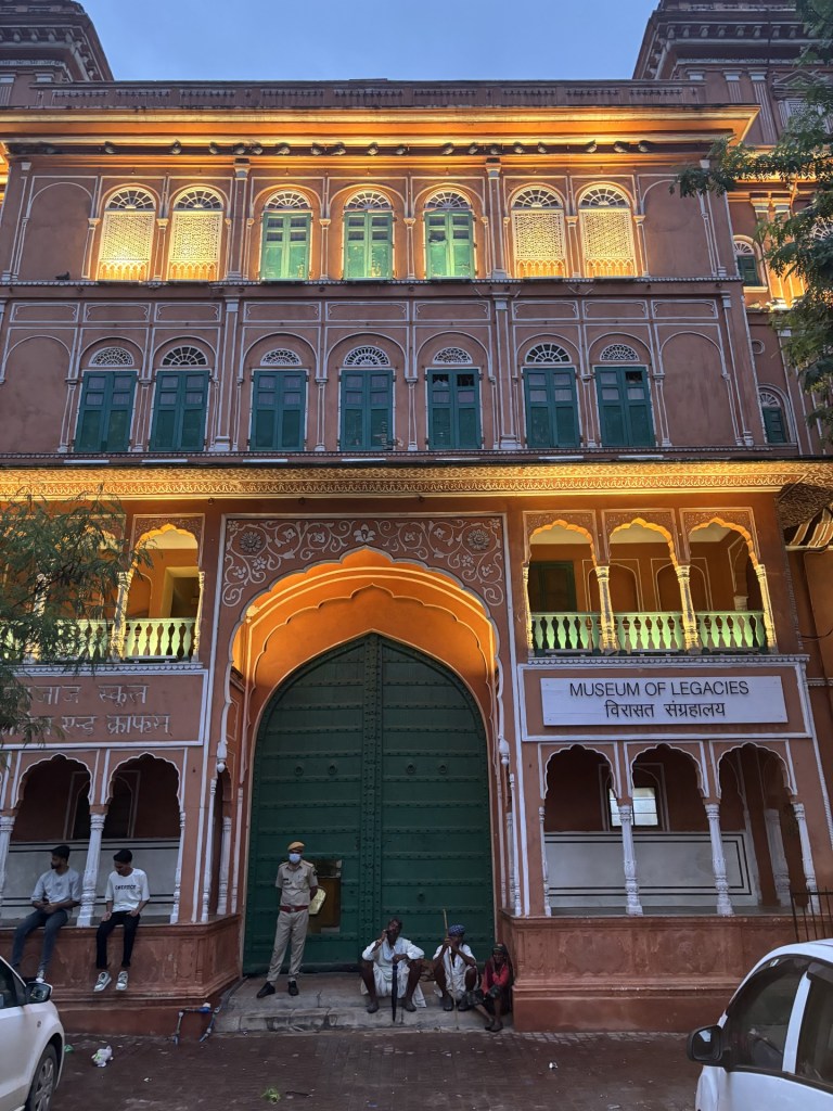 The museum is housed in a nearly 200-year old building, a haveli, in the historic Kishanpole Bazaar of Jaipur’s Pink City.* It was built as a residence of Pandit Shiv Deen, minister in the court of Ram Singh II. It is thought that he donated the home to the ruling king to be converted into a school of art, known as the Rajasthan School of Arts, Since 1857,  it housed what later was the Maharaja School of Arts and Crafts, established by the Sawai Ram Singh II.