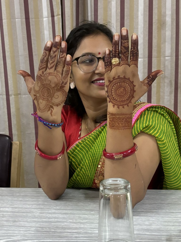 The depth of affection from husbands is believed to be reflected in the darkness of the mehendi (henna patterns), the deeper color signifies greater love.