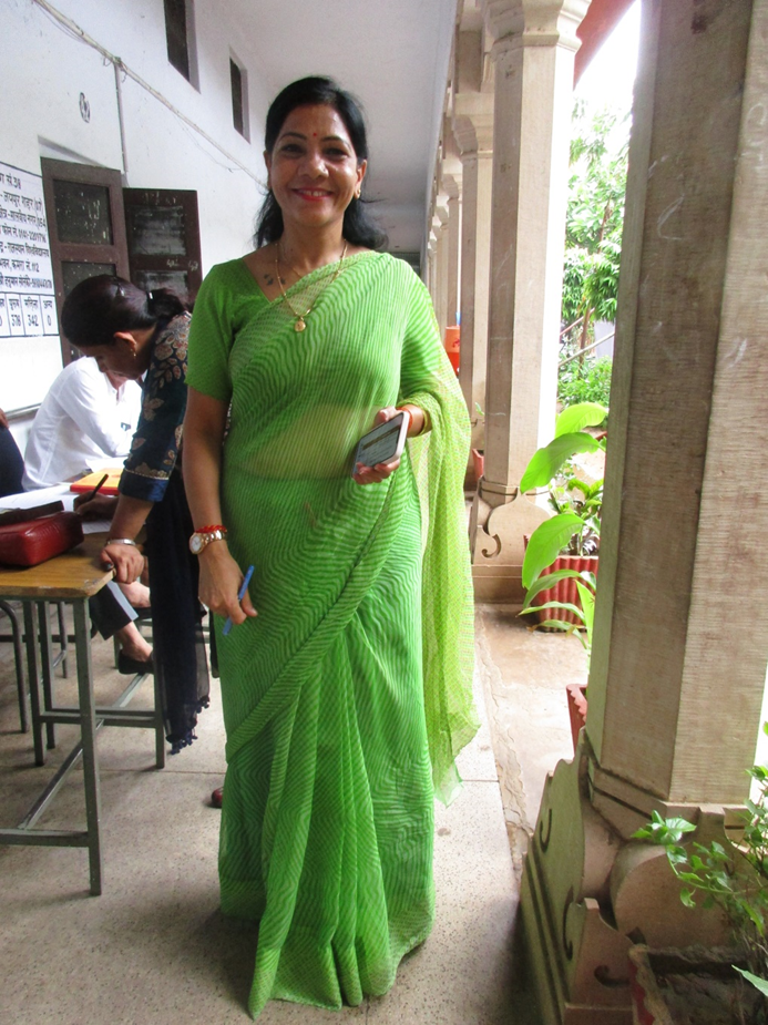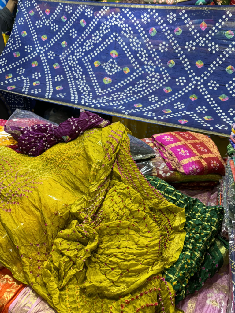 My student was actually wearing a variation, Chunari print, or broken wave. Leheriya’s colorful diagonal or chevron striped patterns are unique to Rajasthan.