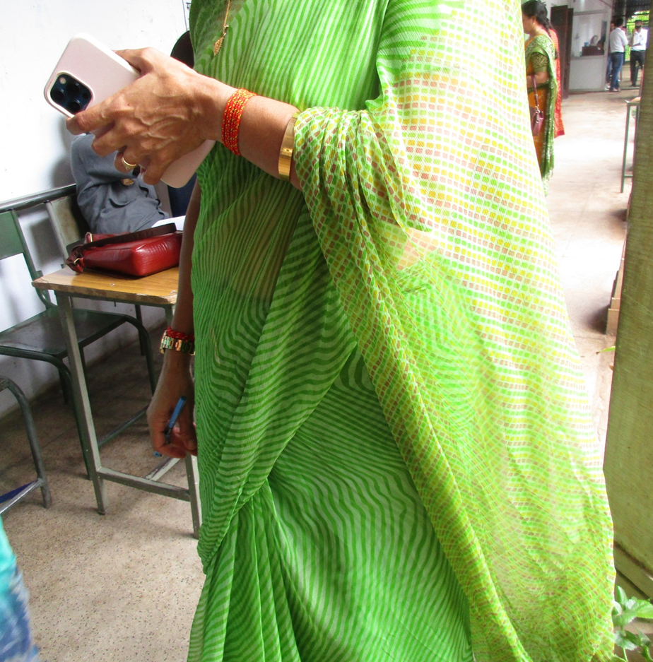 Apparently it is one of the most loved sari designs among women. I came to recognize the lahriya pattern and I see it daily, coming and going.