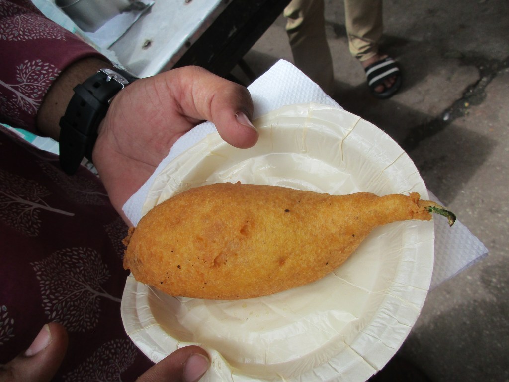 On my second day in Jodphur, India’s Blue City, where I was taken after my first week of teaching via the train (see Oct 7, 2024 post) I ventured into the forbidden realm of street food. My guides stopped for a bite at a local market near one of the city gates and introduced me to Mirchi bada or mirchi vada, a popular Rajasthani street food recipe made with bhavnagiri or green chili jalapeno and chickpea flour batter. Delicious and not too spicy.