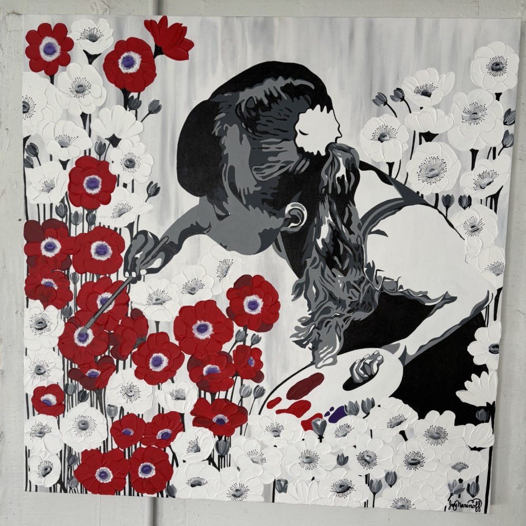 I was drawn to the work of local artist Amy Gelb who captured the landscape and the kaliniot with photographs printed on organza. Other artists in the exhibit captured images of the kaliniot or red anemones found in the Negev.