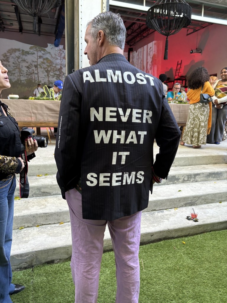 If you’ve read my Art Week observations in previous years, you know that I’m drawn to textiles. I have frequently commented about artworks that manipulate and use textile techniques, fibers, and fabrics in different ways to create artworks. How people present themselves in their dress has been a topic frequently appearing in these posts. This year is not different.