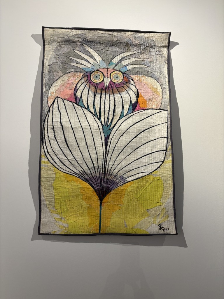 Carbonell collected and assembled bits of fabric into mélanges to create her enigmatic birds.