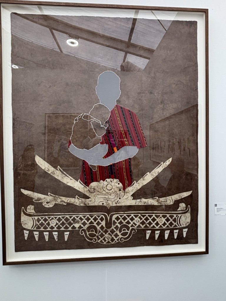 Next stop was Untitled Miami, which launched in 2012. And back to my theme of tradition. the works of several artists stood out. First was Arleene Correa Valencia is a Mexican-American artist based in San Francisco. The works she showed skillfully incorporated textiles with amate paper* made by Jose Daniel Santos De La Puerta to address issues of identity and migration.