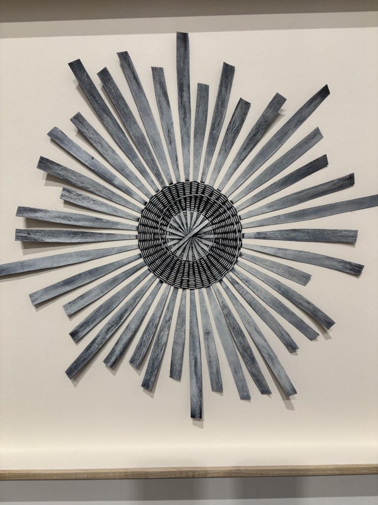 When Constant Companion and I first stepped into the real Art Basel, I was drawn away like a magnet to this most intricate and beautiful black ash and sweet grass basket by seventh-generation Passamaquoddy artist Jeremy Frey who learned Wabanaki weaving techniques from his mother an as an apprentice at the Maine Indian Basketmakers Alliance. Thus, the start of a search for Native American artists as well as others. *