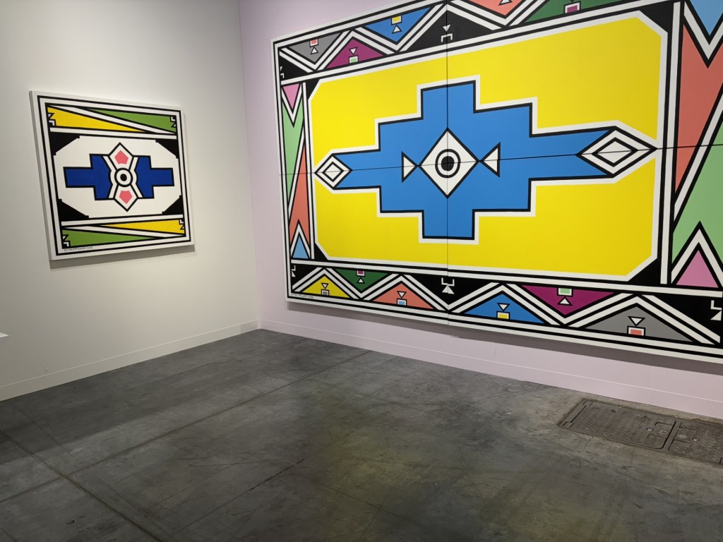 The work of Dr. Esther Mahlangu was also represented in an Art Basel Kabinett. Her bold abstract, geometric paintings are drawn from her South African Ndebele heritage. Here generations of women painted murals on their houses.