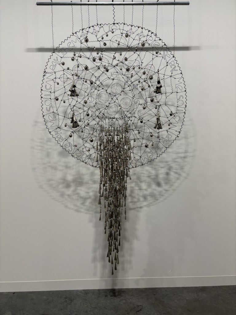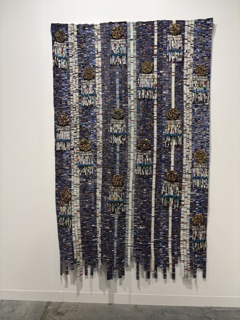 Tradition has my guide during the long days of this year’s Art Basel, the massive show itself. Tradition in several senses … First are the sections I traditionally seek out every year, especially Meridians. It’s the artists whose works I enjoy seeing; many whom now my traditional favorites; I have come to regard them as “friends.” Finally, traditional heritage and practices as in the patterns, materials, and other elements many artists draw from. I mentioned several examples of the latter in my Official Day One post (December 5, 2024 post). I’ll try to focus on this theme here.