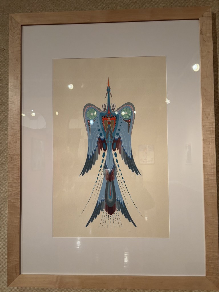 When I saw this Peyote Messenger Bird #1 by Woody Crumbo, a vague memory of an afternoon visit with Mrs. Crumbo. It was a delightful visit during which I learned about the work and life of Mr. Crumbo. I left with two prints that for many years hung in my museum office. This image relates to the sacraments of the Native American Church.