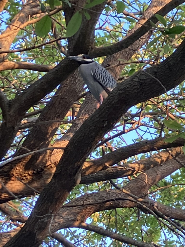 This one is looking for a meal in the mangrove plantings, dripping with Spanish moss and holiday lights, at the pedestrian mall in the heart of the city. I caught it trying to roost in one of the trees later in the evening.