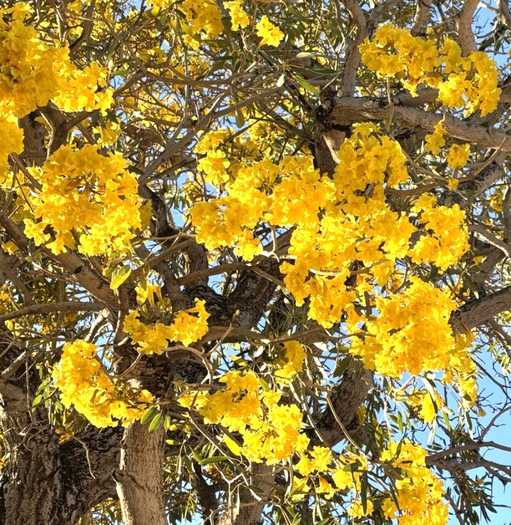 Tabebuia, Caribbean Trumpet Tree, is found all over the county. I love to see it in this season when it is in the midst of bloom, filled with a profusion of bright, beautiful yellow flowers.
