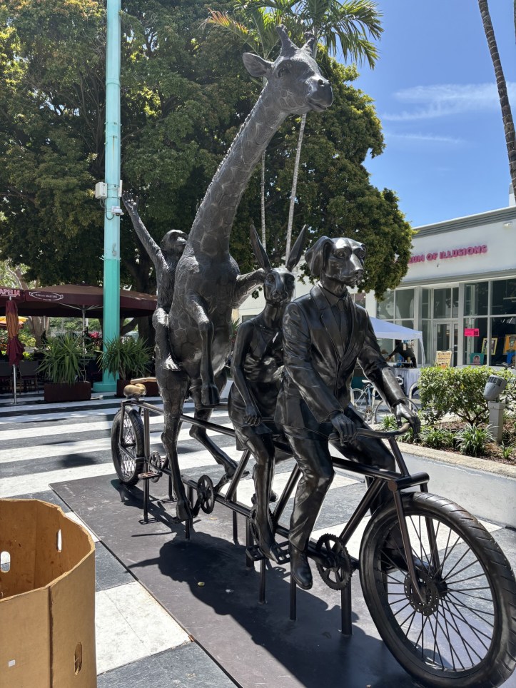 Mother’s Day morning was my time. Our community was established more than one hundred years ago as a seasonal tourist destination. The end of season had arrived and with it the final day of the annual bi-weekly antique and collectables market (https://antiquecollectiblemarket.com/), not to mention rainy season just in a few weeks. I wanted to wander Lincoln Road, the pedestrian mall that is at the center of our city, to take in the market and also some new “art” there.