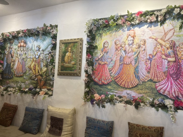 We were introduced to the artwork of Srimati Syamarani Didi, a world-renowned spiritual teacher and artist, that filled the small building. She has created more than 400 pieces of artwork through which the teachings of Bhakti yoga are taught.