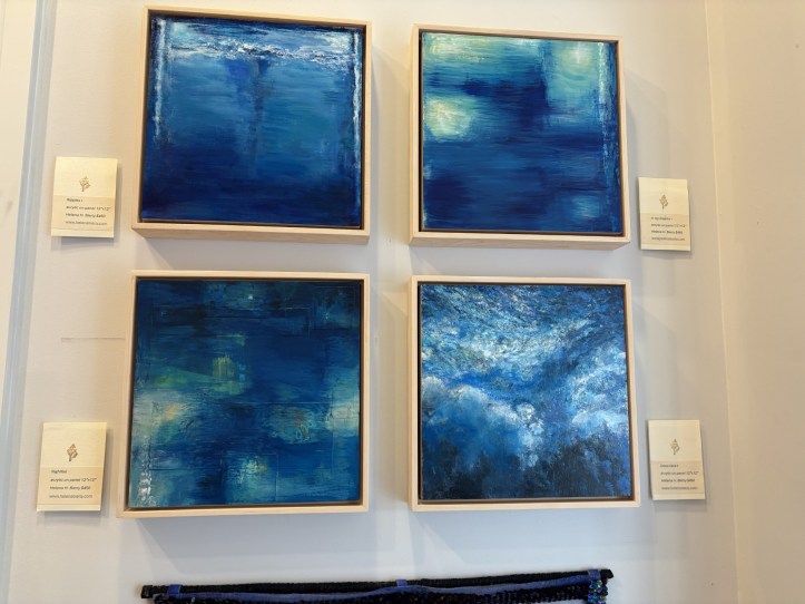 I was drawn to the works of two artists, one in my love, textiles, Tamra Fago. The other was painter, Helena H. Bierly. Both of their collections were inspired by a stay at Montague’s hotel near Marrakesh.