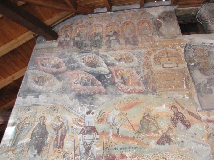 According to tradition, it was built around 1414 as an act of gratitude by Michail Therianos, Voivode of the area, for healing is daughter’s illnesses. The monastery’s frescoes date from the 16th-17th centuries. He and his wife and two children appear in Byzantine finery in the murals, if only I’d known to look for them!