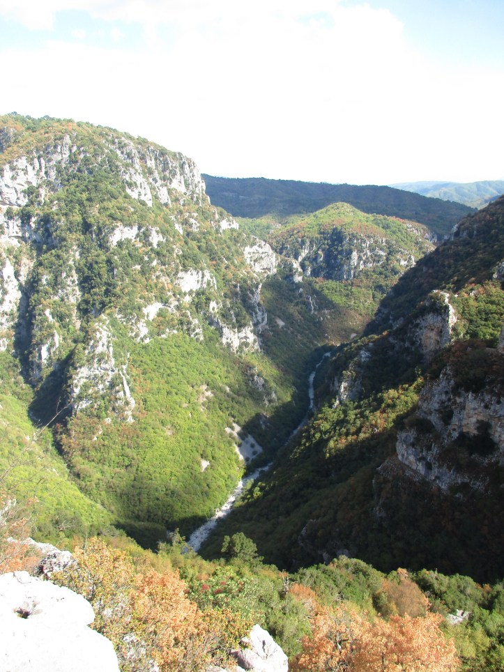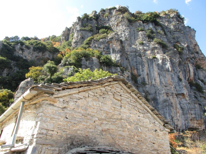 From a terrace opposite the entrance of the monastery we could clearly see the Vikos Gorge; according to the Guinness Book of Records, the deepest gorge relative to its width in the world. The Voidomatis River, said to be the cleanest river in Europe, has carved its path along the bottom of the gorge. The breathtaking gorge has many magnificent vertical geological formations with a wide variety of different ecosystems, as well as an abundance of flora and fauna which live in one of the most intriguing natural wildlife sanctuaries in Europe (https://www.desolationroad.gr/the-monastery-at-vikos-edge).