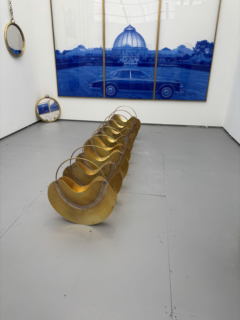Wow, the first thing I saw was Tiff Massey’s installation featuring an oversized representation of gold earrings, as worn by Fullah women in West Africa. Massey is a metalsmith from Detroit known for scaling up her jewelry to celebrate the history of West African and Black American culture.
