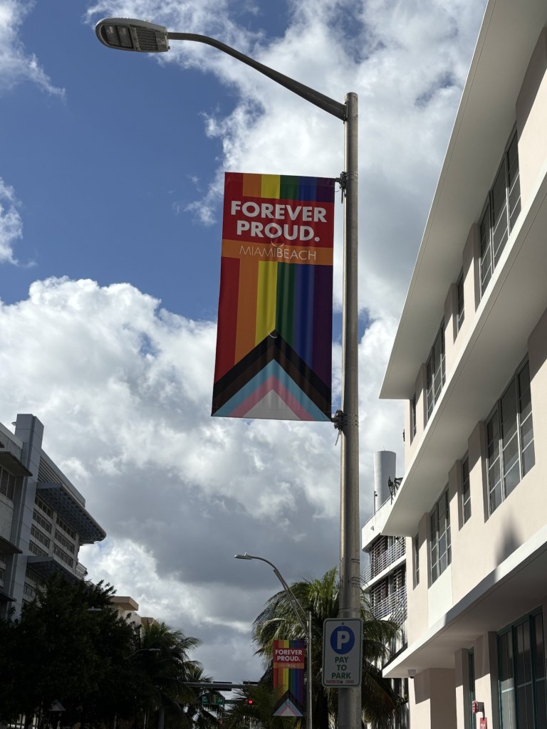 In the meantime, Miami Beach, somewhat recently, made the local – maybe national news – for standing up and refusing to remove our Pride Sidewalk on Ocean Drive. One Sunday evening a work crew showed up and ripped it out (https://www.nbcnews.com/nbc-out/out-news/rainbow-crosswalk-removed-miami-beach-protests-rcna236113). The response of the city is to install banners such as this one.