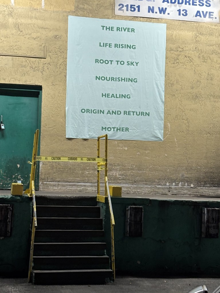 Under a very bright, full moon, we returned to Allapattah (see 12-2-25 for more about the neighborhood). There, right the Produce Market, the largest open-air food distribution center in Miami, curator Omar Lopez-Chahoud staged an innovative exhibition, “Fragments of Displacement.”