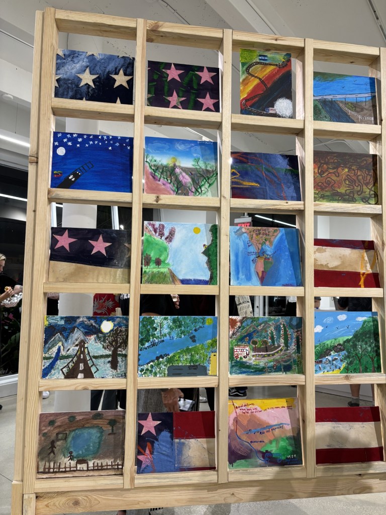 Finally, we went next door to the David Castillo Gallery. The main exhibit was Landscapes from Studio Lenca. I was drawn, however, to a temporary wall filled with artwork created by children that illustrated immigration narratives from Central and South America to the US.