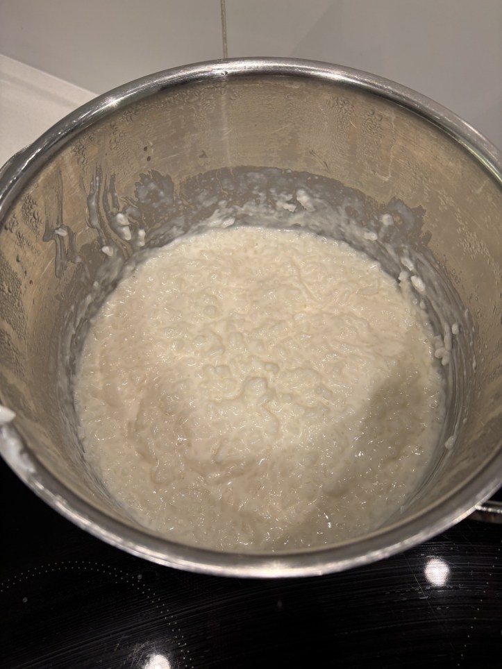 The night before she made the rice porridge filling, simply short grain rice slowly cooked down with milk.