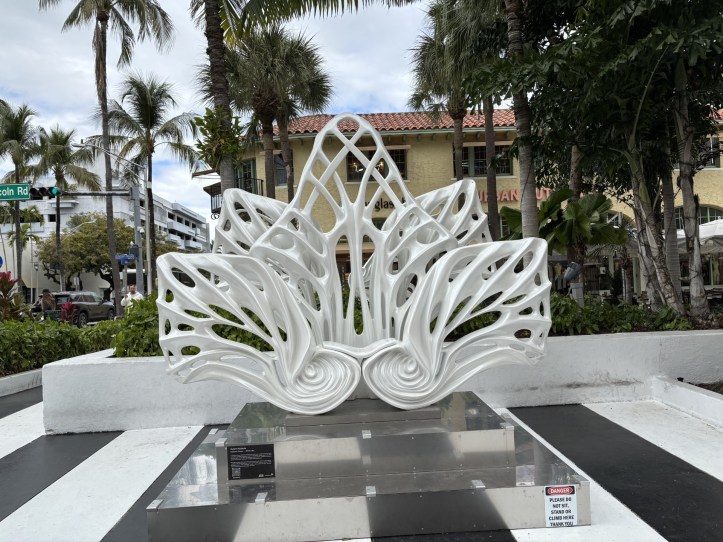 As we strolled Lincoln Road, we found the business district’s newest instagram-perfect installation, Empower Flower-White Lotus and Dream Machine by Rubem Robierb.