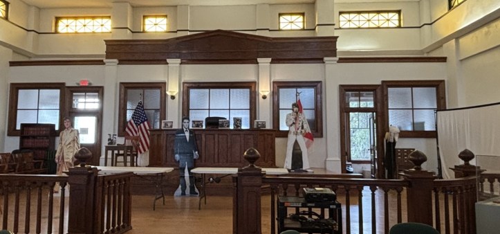 Upstairs, the original courtroom tells the story of Elvis Presley’s visit to Inverness and serves as the public space for speakers and other programs. In 1961, Elvis Presley came to Citrus County to film an early movie, “Follow That Dream.” The story follows a family of drifters who come to Florida and break down alongside a newly built highway. They decide to “homestead” the area. The film ends with the family on trial in the Citrus County Courthouse, now the museum.