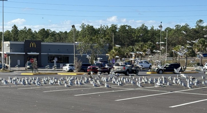 On these forays around the state, I also make a shopping stop or two. I was amazed by this flock of seagulls in a parking lot. Someone said he thought they came for leftover French fries from the neighboring MacDonald’s.